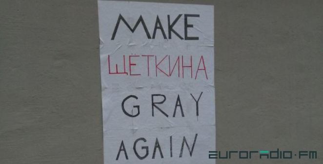 «Стена Щёткиной» вновь замироточила! Авторы очередного граффити обыграли лозунг Трампа «Make America great again» («Сделаем Америку снова великой») — наверное, в связи с тем, что 22 ноября экс-министр труда и зампред Совета Республики была награждена почётным званием «Заслуженный работник социальной защиты Республики Беларусь».