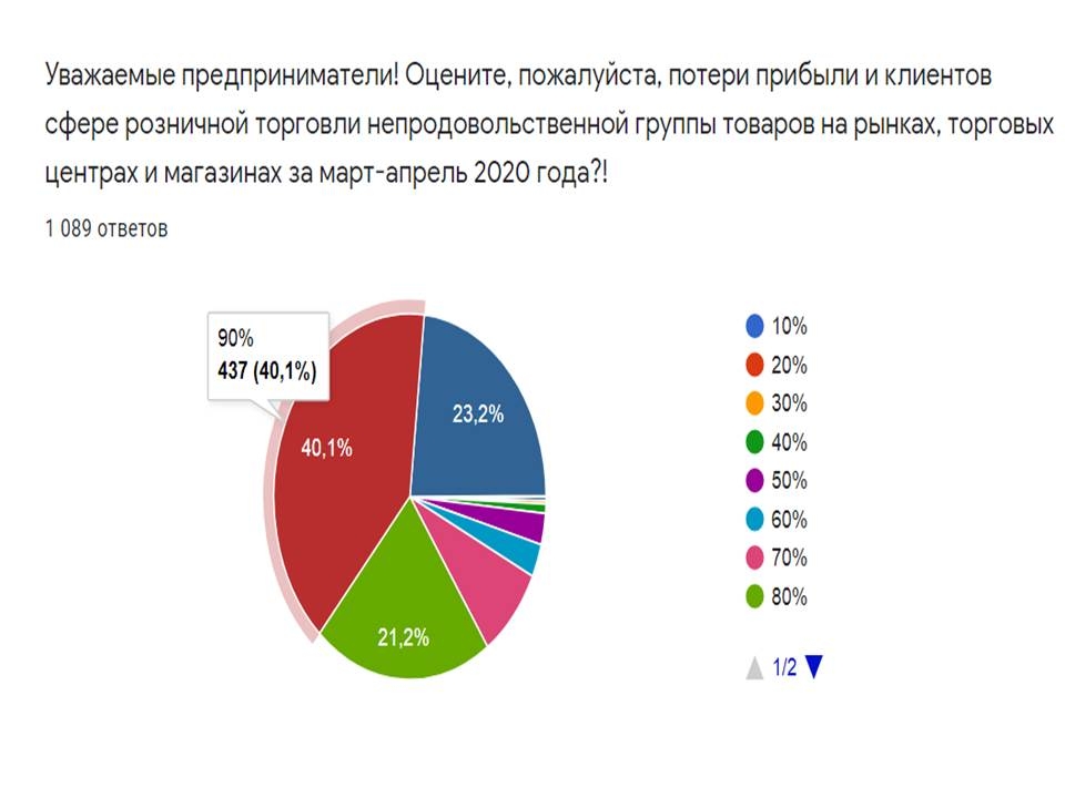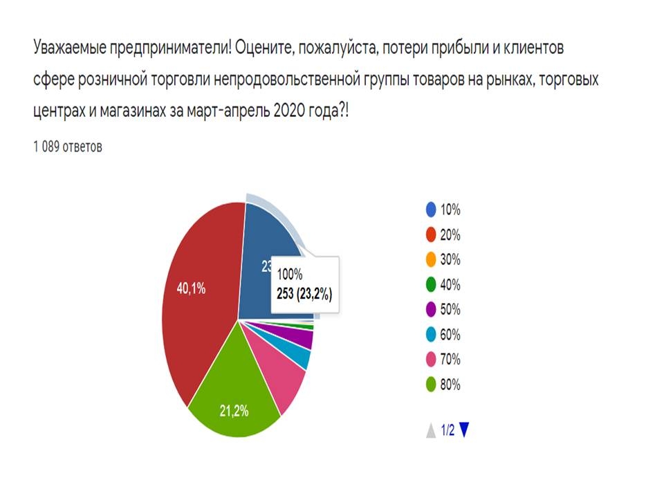Так, 23,4% опрошенных заявили о 100% убытка, 40,3% — о 90%, 21% — о 80%, 8% — о 70% убытка. Только 0,1% не имеют проблем.
