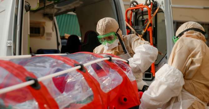 Транспортировка пациента с коронавирусом из 3-й городской клинической больницы Минска в инфекционную больницу. 27 марта 2020 года. Фото: БЕЛТА