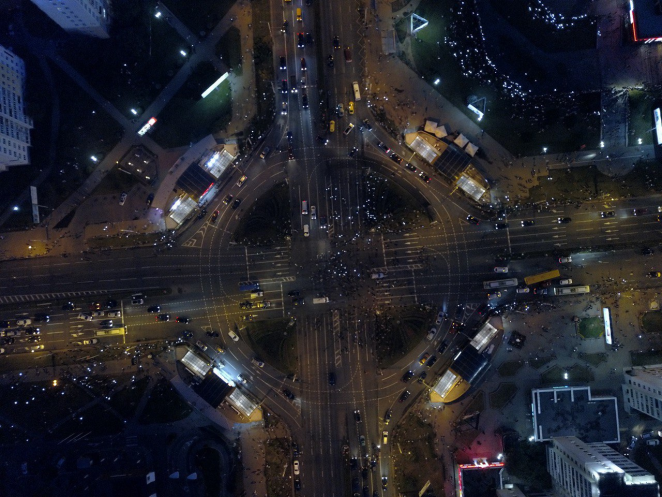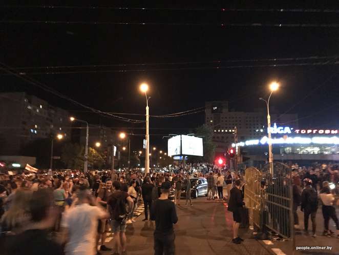 21.30. «Наша Нiва» сообщает, что количество демонстрантов около Галереи выросло до 3 тысяч человек. Они перекрыли проспект Победителей и скандируют «Уходи!».
