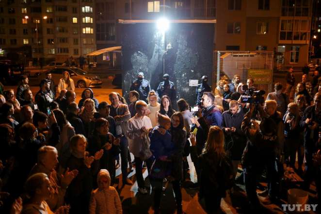 В Минске появилась «Площадь Перемен» - так назвали двор домов на улице Червякова. Каждый вечер там собираются местные, слушают музыку и украшают бело-красно-белой символикой территорию.