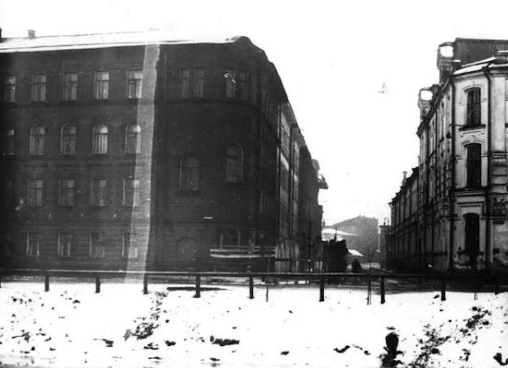 Весь квартал до параллельной Садовнической улицы был им застроен и заселен. На месте этого углового желтого здания стояло другое. Там было необычное архитектурное решение — внутренняя круговая лестница на углу дома с несимметричными окнами. Благодаря этому дом был очень узнаваем — его часто фотографировали и снимали.