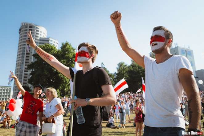 Людское море заполонило столичный проспект Победителей. Количество людей, посетивших митинг, оценивалось в 400 тысяч человек.