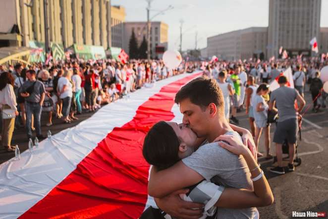 Интересно, что символом перемен стихийно стал бело-красно-белый национальный флаг. Люди сами выбрали символ.