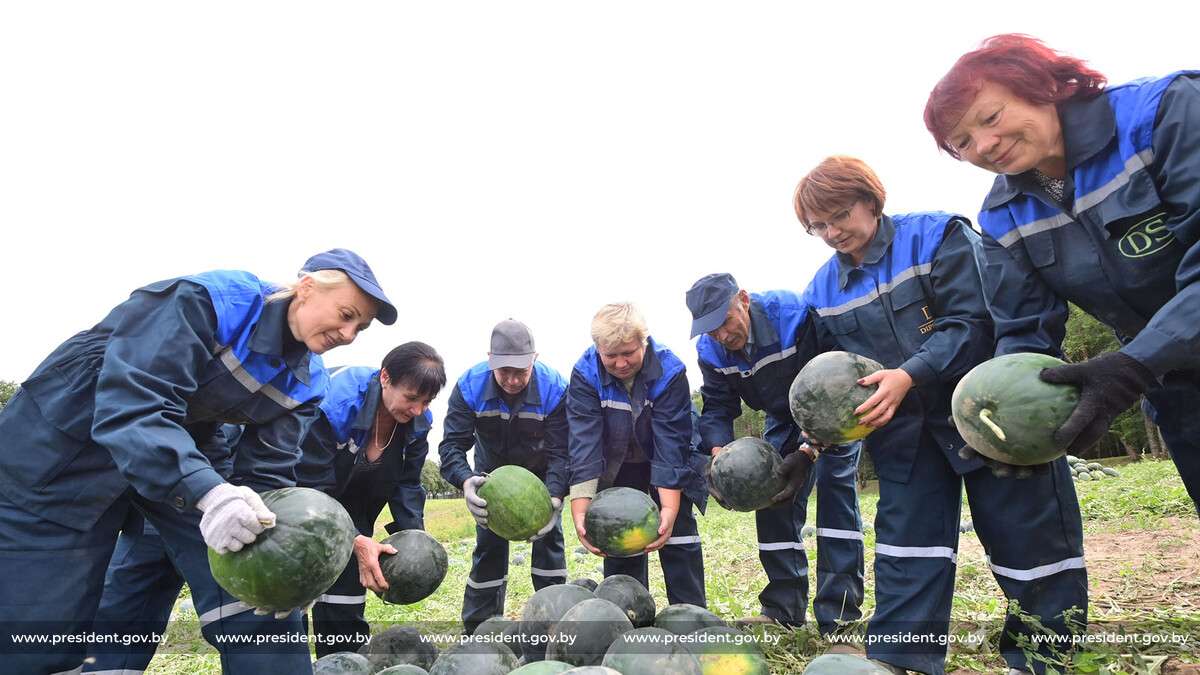 Помогала собирать арбузы Марта Голубева — актриса Купаловского театра. На снимке Марта — справа, в белой майке