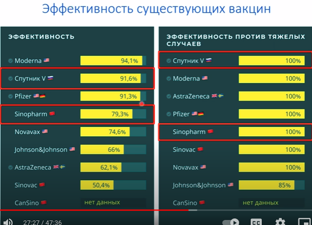 4) почти все вакцины эффективны на 100% против тяжелых случаев;