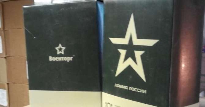 Коробки с надписью "Военторг. Индивидуальный рацион питания" показал на видео украинский военный.