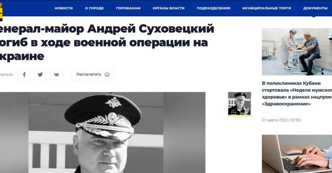 Ой ли? Факт гибели генерала Андрея Суховецкого уже подтвержден официально: на сайте администрации Новороссийска.