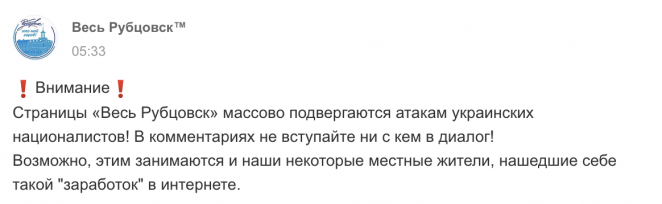 Несмотря на широкий резонанс, который получила тема с мародерством, этот инцидент местными пабликами Рубцовска игнорируется, а комментарии с критикой российских солдат подчищаются. Постящих такую информацию стараются заблокировать. Админы объясняются, что это якобы провокационный контент, который никак не касается городской тематики.