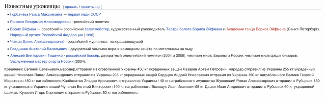 В «Википедии» к известным выходцам из Рубцовска добавили солдат-мародеров