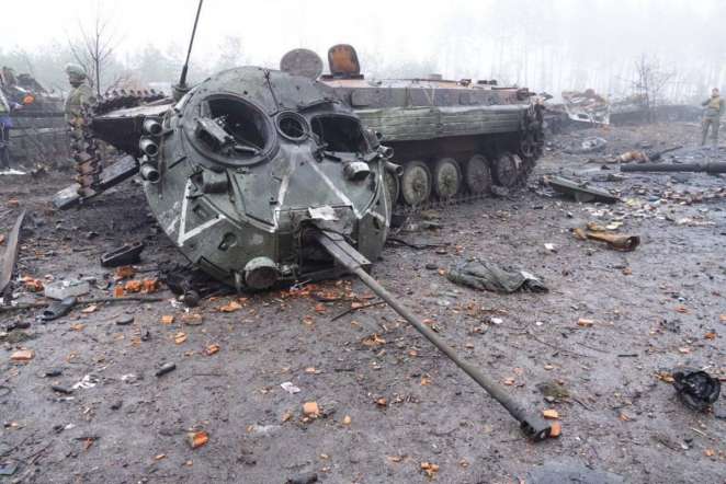 Разбитый российский танк в Киевской области/ Telegram Киевская ОВА
