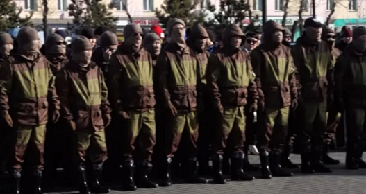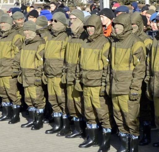 Обратим внимание, что наемники из Тувы прячут лица за балаклавами, а вместо армейских ботинок им выдали странные резиновые сапоги.