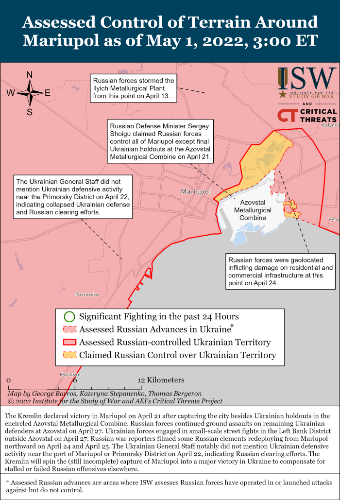 В этом районе массовых боевых столкновений не было. Началась эвакуация с завода "Азовсталь".