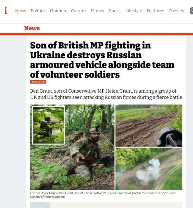 Одним из бойцов, который в составе группы иностранных добровольцев уничтожил российский БТР-80 на шикарном видео, оказался 30-летний бывший королевский морской пехотинец Бен Грант, сын Хелен Грант, члена парламента Великобритании от партии тори, сообщает УНИАН.