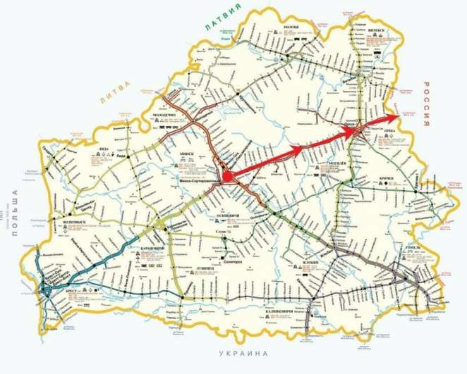 После погрузки группы вагонов (по 6—10 единиц), как сообщается отправляют на станции Минского железнодорожного узла и уже там их «прицепляют» к обычным грузовым поездам и отправляют (по маршруту: Минск — Орша — станция Красное — Смоленск) на станции назначения в РФ.
