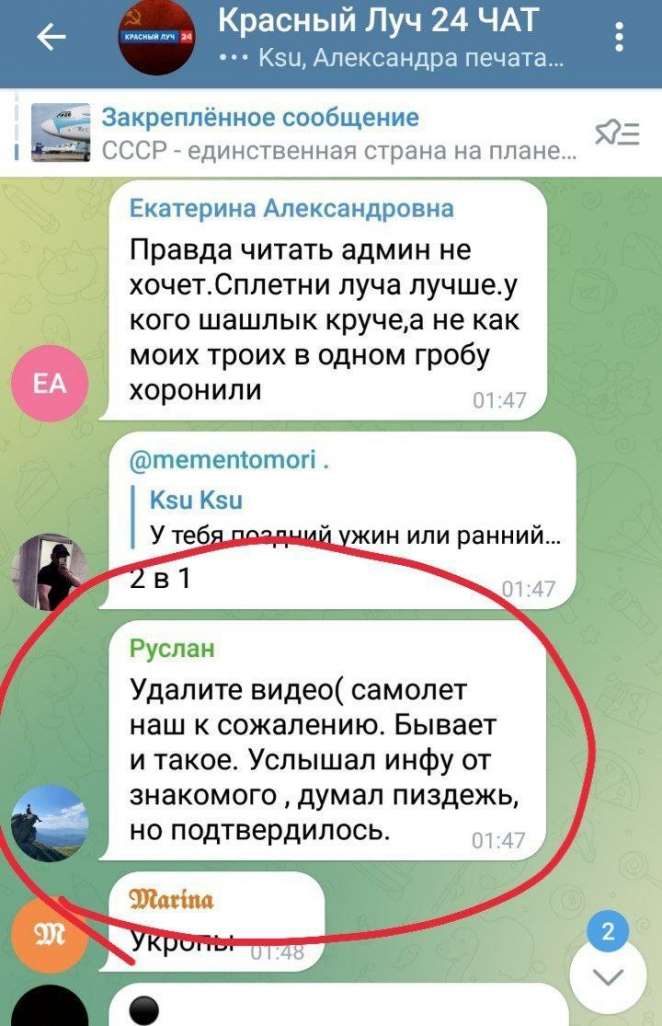 Кроме того, фото сбитого самолета опубликовали в местных чатах, после чего в комментариях люди призвали удалить пост.