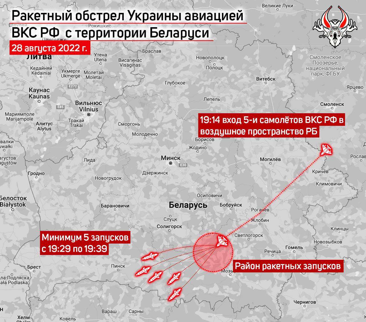 Авиация РФ с неба Беларуси выпустила по Украине не менее пяти ракет