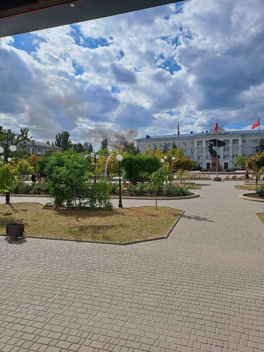 Одновременно сообщается о взрывах и стрельбе возле здания администрации оккупированного Бердянска, это побережье Азовского моря.