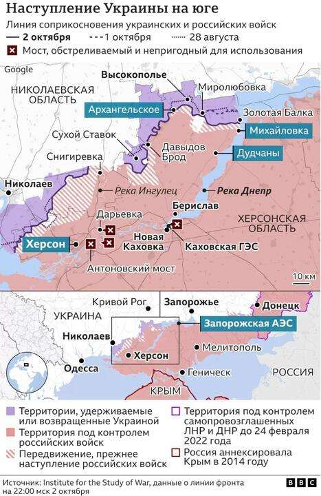 А накануне вечером президент Владимир Зеленский подтвердил, что украинские военные полностью взяли под контроль Архангельское на севере Херсонской области.