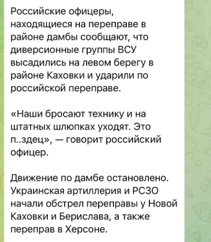 «По последней информации – 4-я тактическая бригада была выведена на левобережье. Остальные на позициях, ведут бои с целью прикрытия отступления», - сказал Вадим Скибицкий.