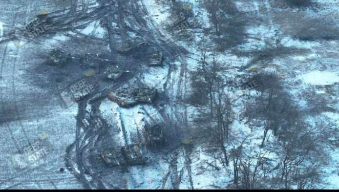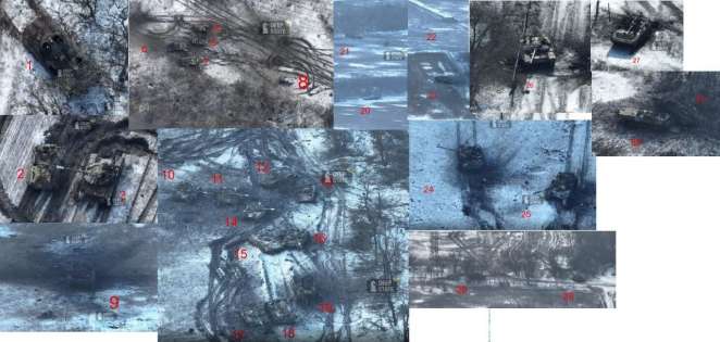На фото можно увидеть «танковый прорыв», закончившийся бегством оккупантов из-под Угледара. На кадрах журналисты насчитали 31 уничтоженную военную технику — танки, БМП и БТР.