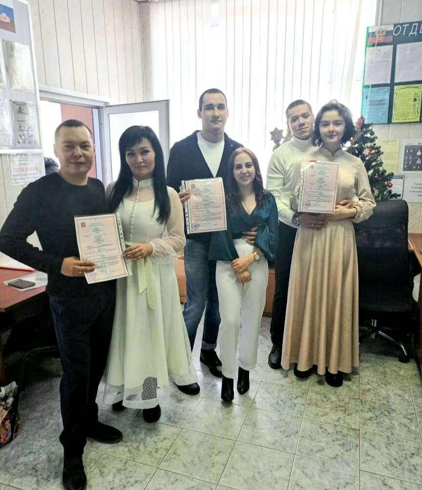 Три семейные пары, которые поженились в администрации п. Северны Белгородского района. Все ребята — из Челябинска. Фото: страница отдела ЗАГС администрации Белгородского района во «ВКонтакте»