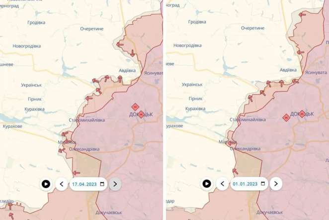 Отметим, в отчетах украинского командования ежедневно фигурируют попытки армии РФ прорвать линию фронта возле Авдеевки и Марьинки. Раньше – возле Угледара. Впрочем, онлайн-карта боевых действий DeepState свидетельствует, что враг продвинулся здесь минимально - кое-где на расстояние от 500 м до 2 км в течение последних 4 месяцев.