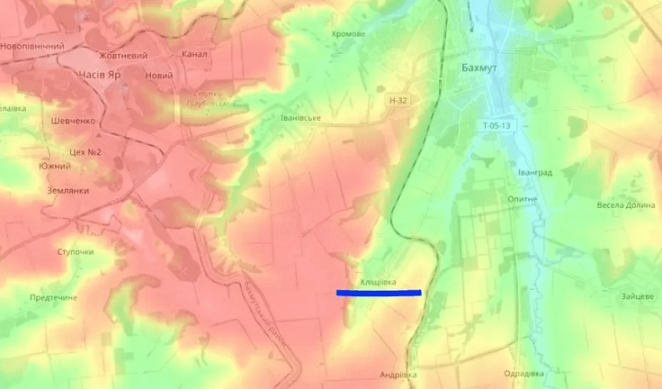 Значение Клещеевки легко понять, когда мы смотрим на карты высот. Клещеевка и холмы вокруг нее находятся на 30-100 метров выше Бахмута к северу от нее, из нее он простреливается.
