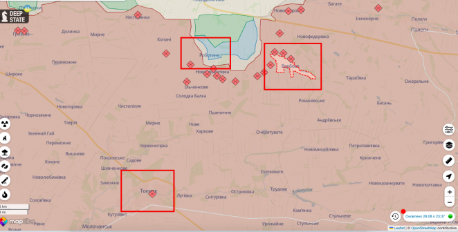 Если ВСУ смогут отодвинуть линию фронта примерно на 9 км от Токмака, то украинская артиллерия сможет атаковать железнодорожные и автомобильные линии. Это сделает Токмак бесполезным как узел автомобильно-железнодорожного транспорта, уверен аналитик.