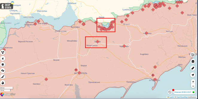 ВСУ прорываются через главную линию обороны РФ на юго-востоке – они атакуют позиции оккупантов в районе населенного пункта Вербовое (оно расположено в 14 км от освобожденного поселка Работино). Таким образом украинская армия планирует «поставить» в зону досягаемости своей артиллерии критически важные российские логистические линии в районе Токмака.