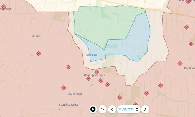 ВСУ сумели продвинуться на 1000-1500 метров южнее и юго-всточнее Работино в направлении Новопрокоповки. Таким образом, группировки оккупантов в двух населенных пунктах оказались под огнем с двух сторон: для Новопрокоповки – с севера и востока, а для Вербового – с запада и северо-запада соответственно.