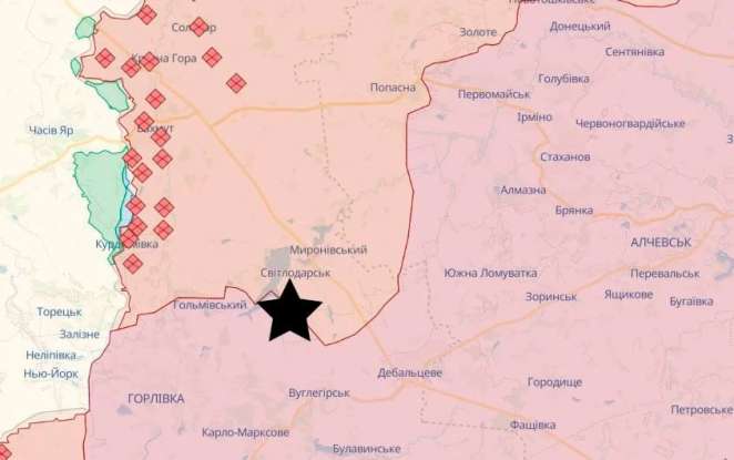 Силы обороны Украины двумя бомбами JDAM поразили расположение российской армии в оккупированном Светлодарске, что в 20 км южнее Бахмута.