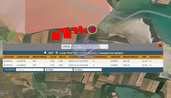 «Есть еще один пожар и гораздо более интересный. На первый взгляд пустынный берег Сиваша. Но тут есть малоизвестная дамба с переправой в Херсонскую область, целый укрепрайон и батарея РЭБ», – говорится в сообщении.
