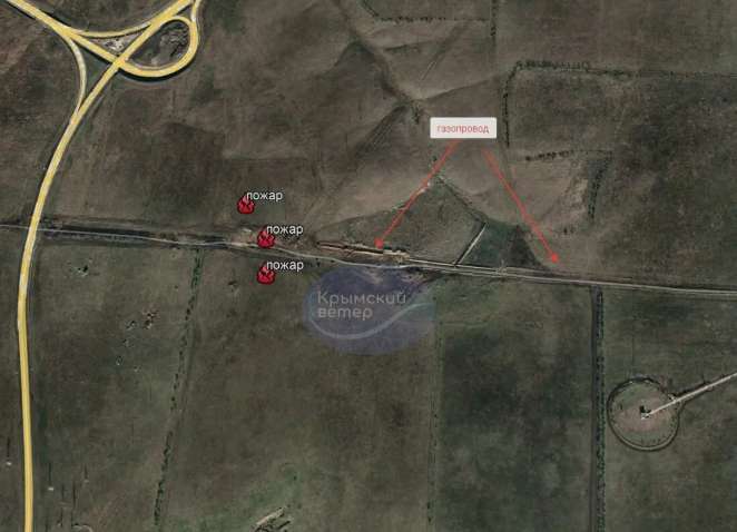 Кроме того, спутник показывает пожар на газопроводе западней Симферополя. Огонь замечен рядом с трассой «Таврида».