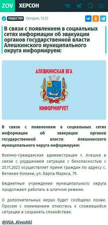 В свою очередь, оккупационная администрация россиян сообщила о переносе приемной в связи с ухудшением ситуации с безопасностью в соседний населенный пункт Великие Копани, который находится в 20 км к юго-востоку Олешек.