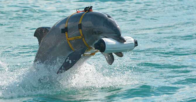 Эти млекопитающие считаются эффективными против военных водолазов: ни один человек, каким бы натренированным он ни был, не может плавать с такой же скоростью. Также дельфины могут патрулировать побережье с устройством видеофиксации и радиомаяком.