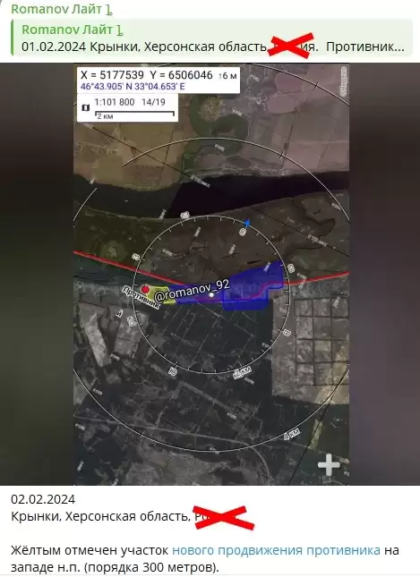 «Руководство на местах скрывает реальную обстановку от ГШ, чтобы это самое ГШ это руководство не д*ючило. ГШ же, в свою очередь, не обладая объективной информацией о реальной обстановке, строит замыслы в отрыве от реальности. Противник в Крынках действительно продвинулся, и у меня, как и в прошлый раз, есть все точки его присутствия, включая двухэтажку», - объяснил свой поступок Z-военкор.
