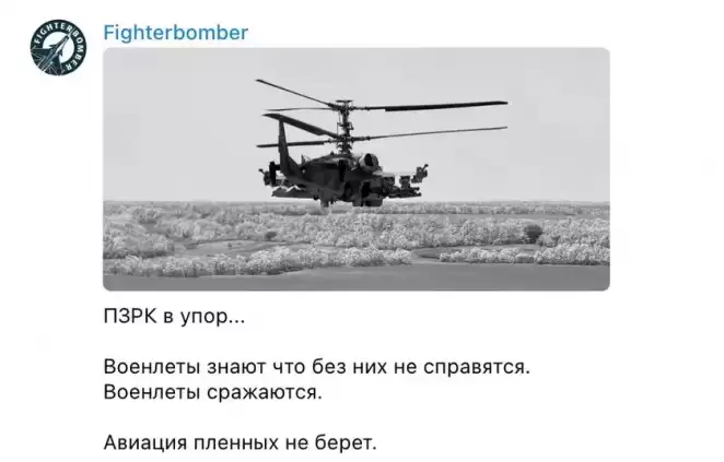 «Утро них** не доброе. Узнал об этом в режиме онлайн от их коллеги, который летит рядом. Не хотелось радовать украинцев. Если уж всё слили в инфополе, то да, мы потеряли Ка-52. Предварительная версия — ПЗРК от диверсионной группы».