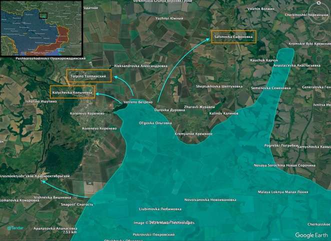 Украинские войска вышли к Сафоновке в Курской области, расширяя зону контроля на территории России. Об этом сообщает немецкий военный эксперт, пишущий в социальной сети Twitter под ником Tendar.