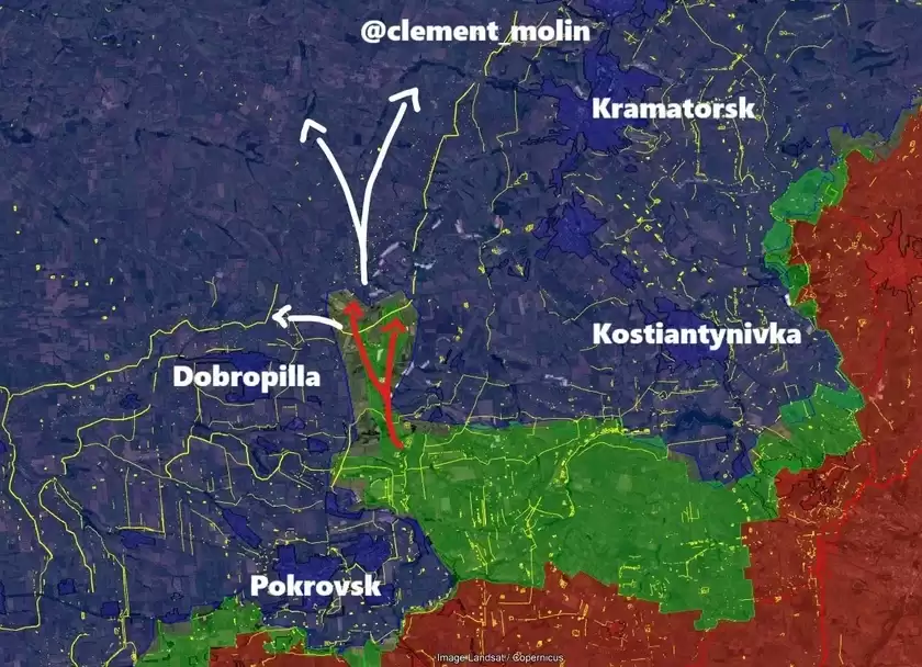 Российские военные смогли войти в сёла Кучеров Яр и Золотой Колодезь к северу от Покровска на юге Донецкой области, сообщил украинский OSINT-проект DeepState. Это означает, что российским военным удалось преодолеть новую линию обороны Донбасса — эшелонированную систему оборонительных укреплений ВСУ к западу от Покровска, Краматорска и Славянска, цитирует OSINT-аналитиков Playfra и Клемента Молина (Clement Molin) «Агентство».