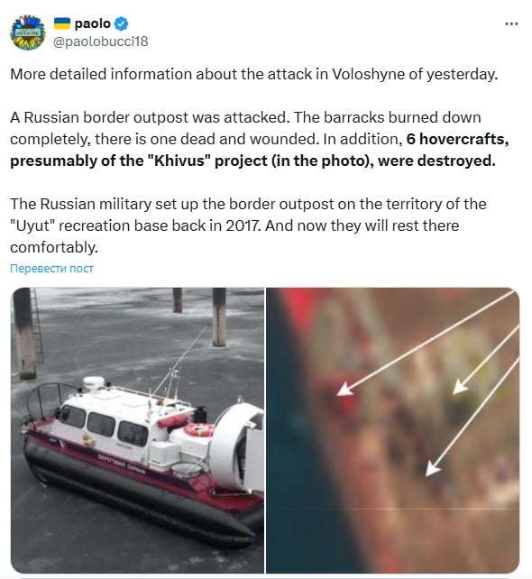 По информации Astra, удар повредил до шести патрульных катеров на воздушных подушках. Точные типы катеров пока не уточняются, однако известно, что ФСБ в данном регионе использует суда проектов А-8 «Хивус» и А25ПС.