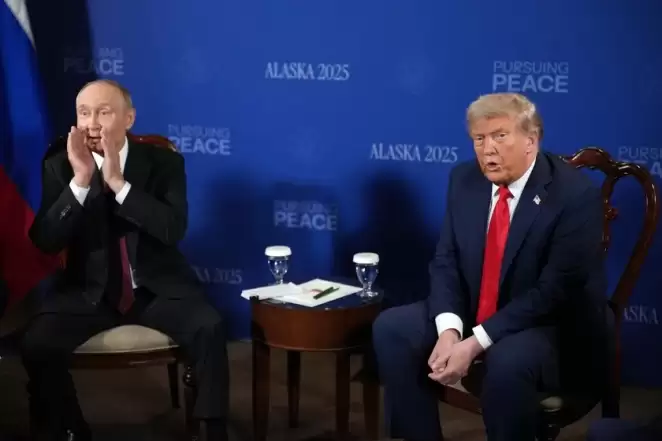 Владимир Путин и Дональд Трамп во время встречи на Аляске 15 августа 2025 года. Фото: Andrew Harnik / Getty Images
