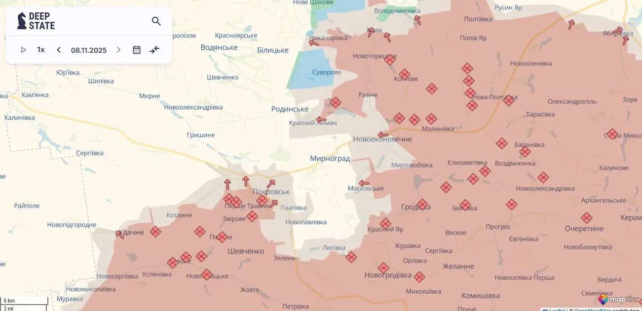 – 86 боевых столкновений за минувшие сутки именно на Покровском и Мирноградском направлениях, поэтому говорить о значительном уменьшении боевых действий я бы не рискнул. Да, на пике боевых столкновений их было под сотню, но говорить о значительном уменьшении боевых столкновений не приходится.