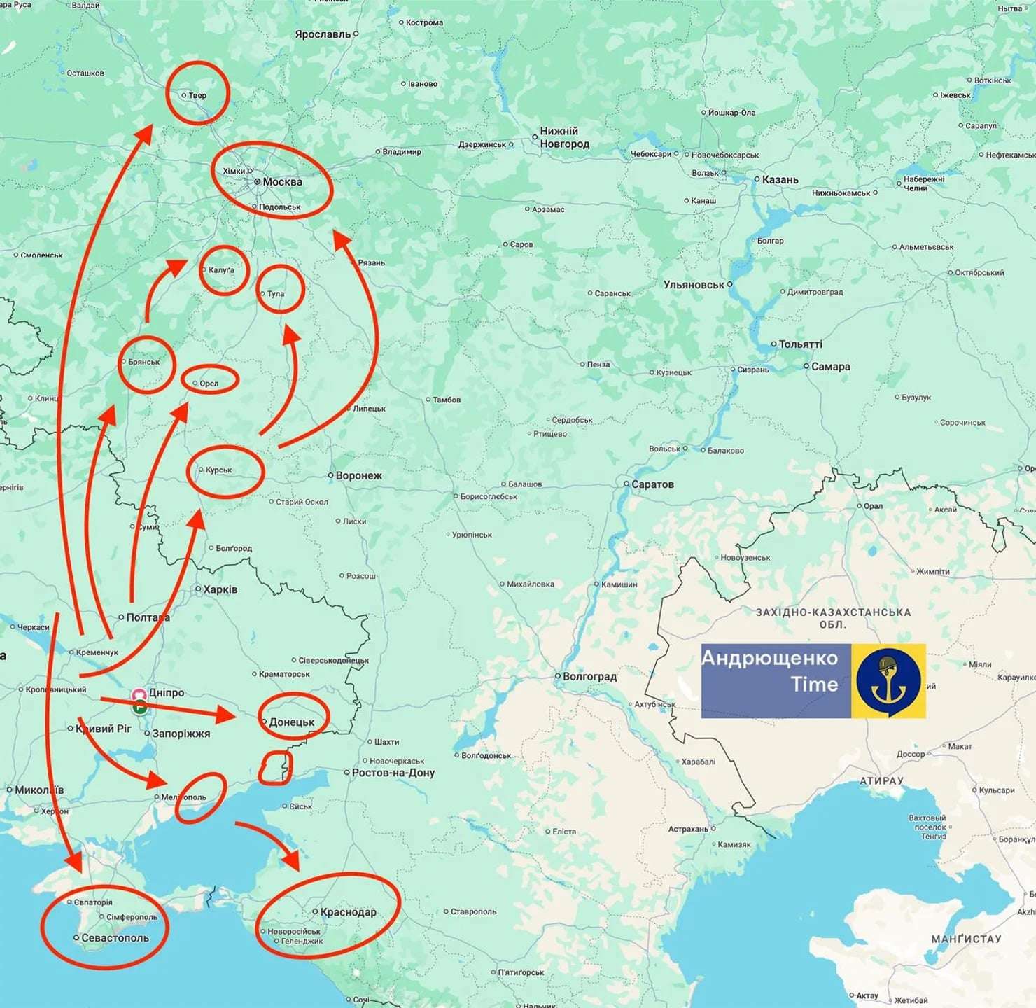 Руководитель Центра изучения оккупации Петр Андрющенко собрал информацию об атаке дронов на Россию. По данным чиновника, работа вражеской противовоздушной обороны была зафиксирована в пределах Брянской, Калужской, Московской областей и Москвы, а также над Тульской, Орловской, Ростовской, Курской, Тверской областях и Краснодаром.