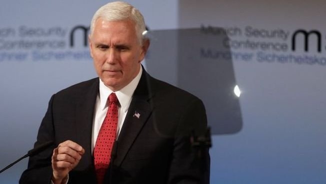 Это первое выступление Пенса за пределами США после вступления в новую должность.