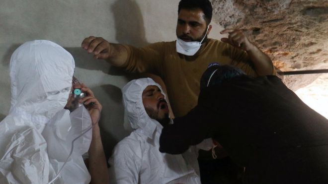 Во вторник утром город Хан-Шейхун подвергся бомбардировке. Сирийские правозащитники сообщили, что авианалет на город на северо-западе Сирии совершили самолеты сирийской армии или российской авиации. Сразу после авиаудара люди на земле стали задыхаться.