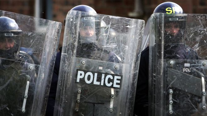 Но в Северной Ирландии отношения местного населения с полицией сложились иначе. Из-за вооруженных конфликтов в этой части королевства, часто применялась - и до сих пор применяется при необходимости - "дистанционная тактика": это водометы, слезоточивый газ или пластиковые пули, вдобавок к обычными полицейским, вооруженным щитами и дубинками.