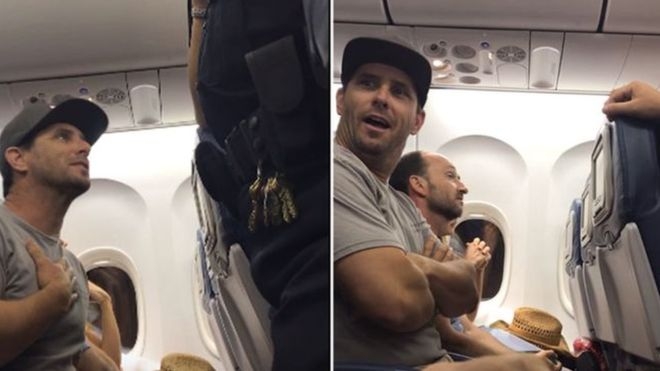 На 8-минутном видео видно, как члены экипажа уговаривают Брайана Шира освободить место, за которое он заплатил.