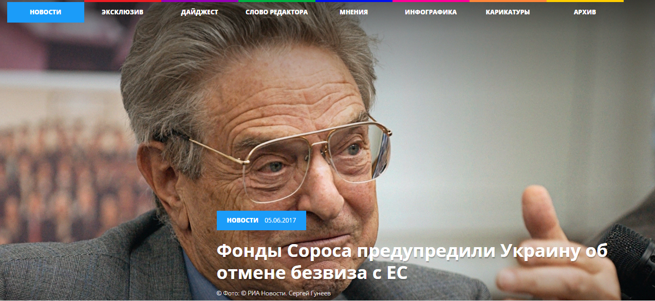 RT (ранее Russia Today) опубликовало информацию о том, что об отмене безвиза с ЕС Украину предупреждают «фонды» американского миллиардера Джорджа Сороса. Однако она подтвердилась.