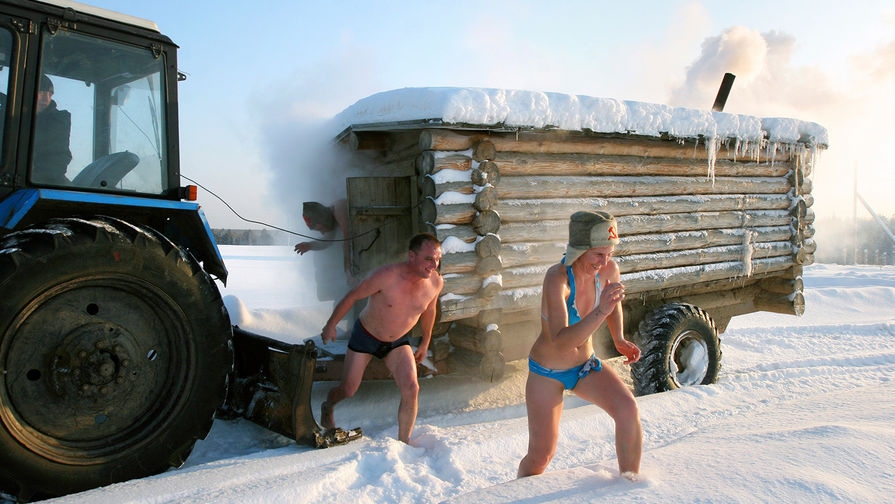Мобильная баня в деревне Бобровка в Омской области, декабрь 2009 года Alexei Malgavko / Reuters